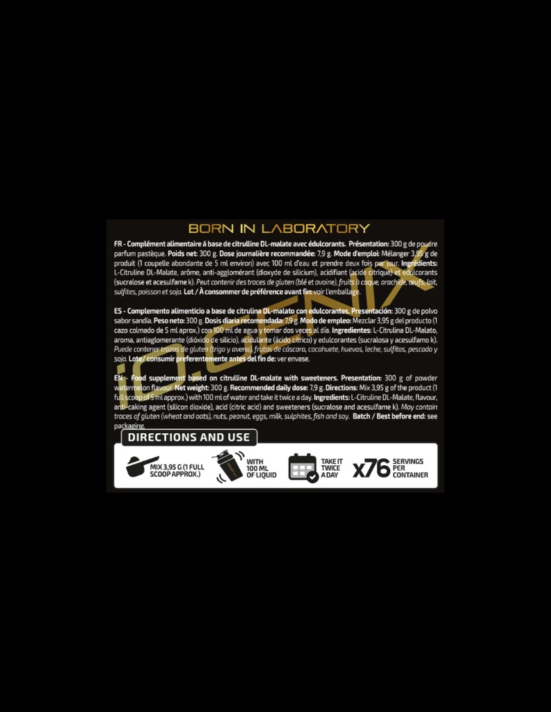 - Suplemento puro de Citrulina D, L-malato.