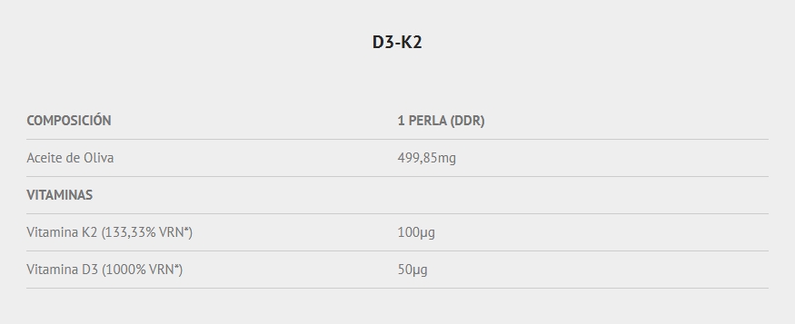 Vitamina D3-K2 Natural Mena Q7® (MK-7) Ayuda a alcanzar y mantener niveles adecuados de las vitaminas D3 y K2, contribuyendo a un rendimiento deportivo óptimo, una recuperación más rápida, y una mejor salud ósea y cardiovascular.La vitamina D y la vitamina K2 juegan un papel fundamental en el deporte y la salud. Mantener niveles adecuados de estas vitaminas puede contribuir a un rendimiento deportivo óptimo, una recuperación más rápida, y una mejor salud ósea y cardiovascular.